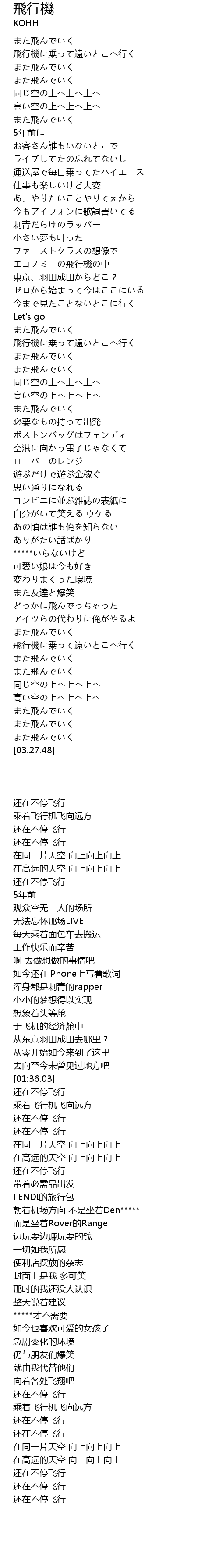 | [00:27.41] | 飛行機に乗って遠いとこへ行く |