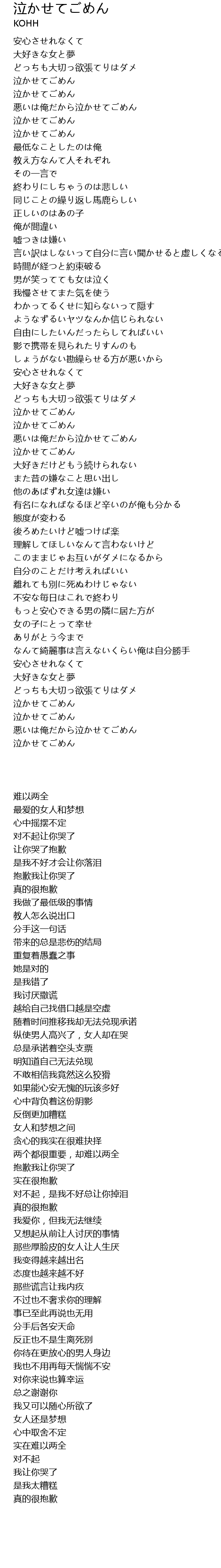 | [00:54.52] | 悪いは俺だから泣かせてごめん |