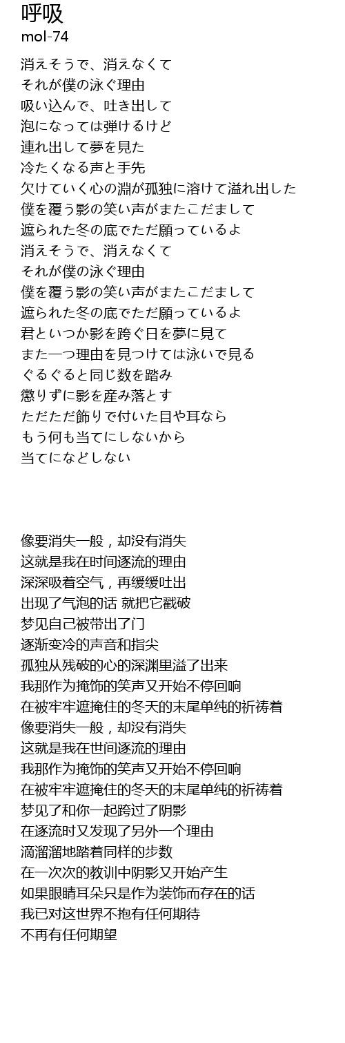 | [01:05.48] | 欠けていく心の淵が孤独に溶けて溢れ出した |