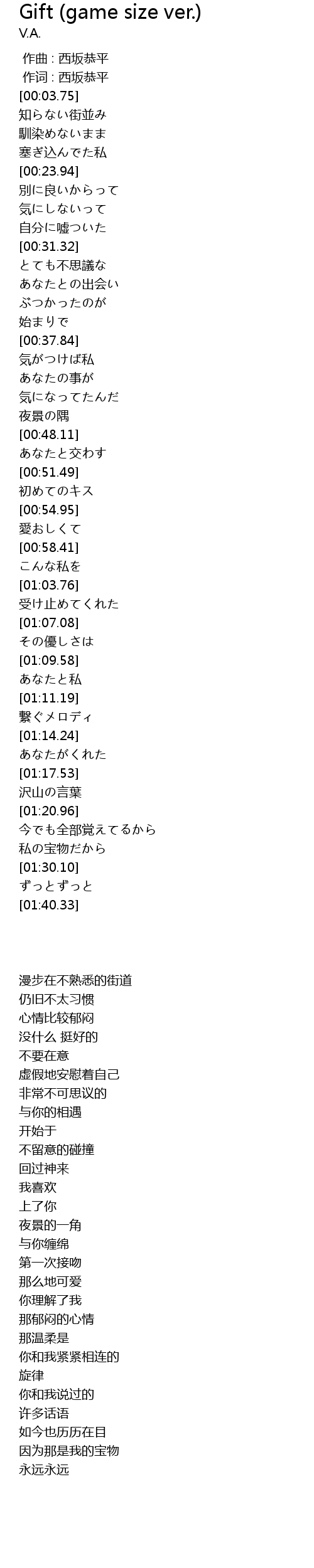 | [00:00.00] | 作曲 : 西坂恭平 |