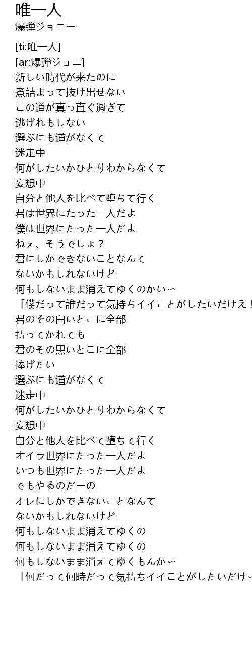 | [01:31.399] | 僕は世界にたった一人だよ |