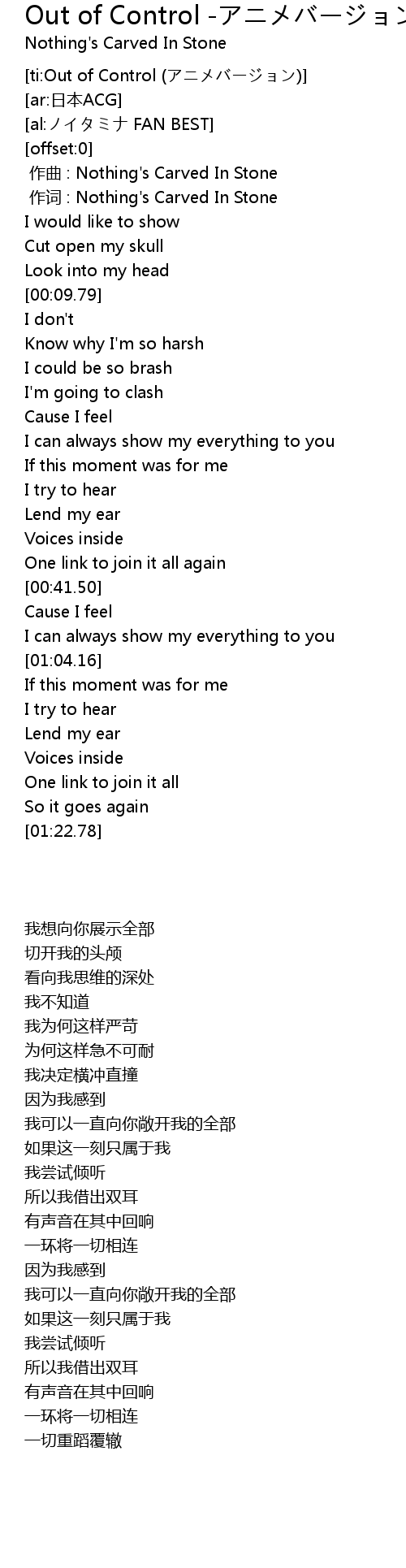 | [00:00.00] | 作曲 : Nothing's Carved In Stone |