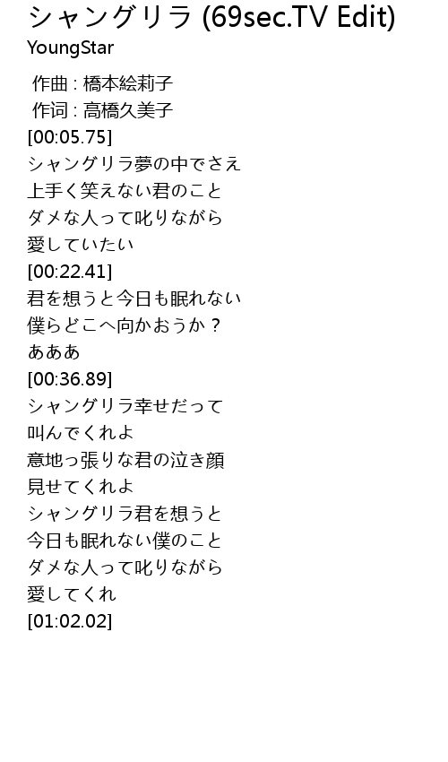 | [00:10.85] | シャングリラ夢の中でさえ |