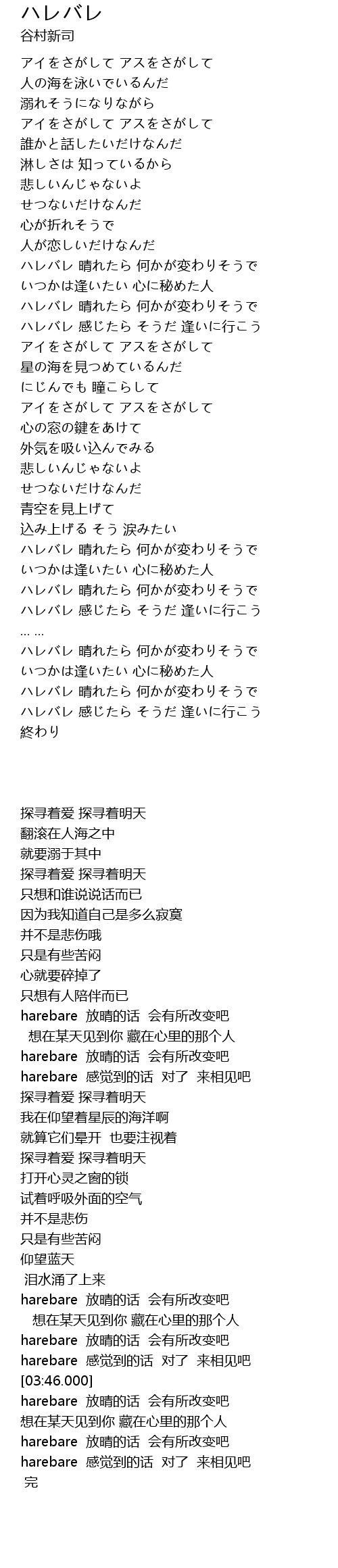 ハレバレ 感じたら そうだ 逢いに行こう |