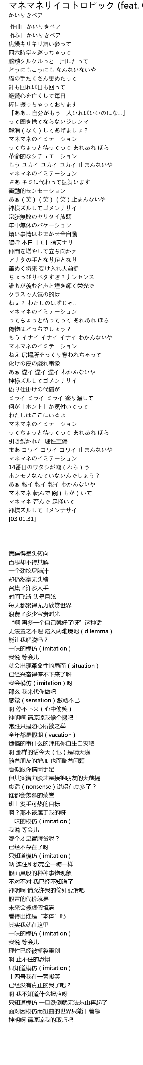 | [02:53.24] | マネマネ 転んで 踠(もが)いて |
