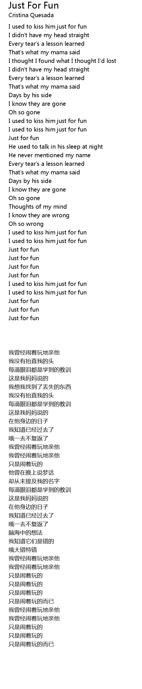 I used to kiss him just for fun |