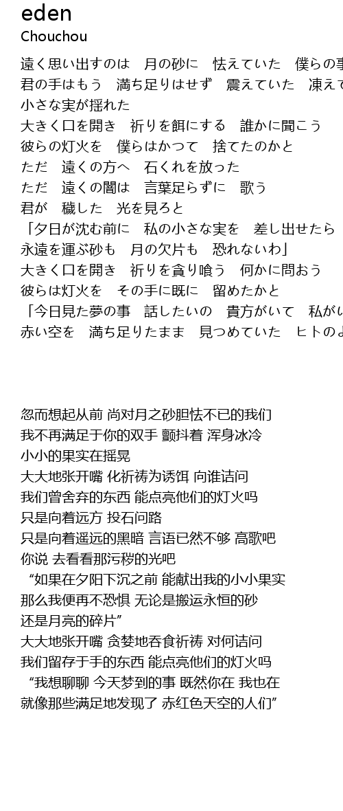 | [04:54.18] | 赤い空を 満ち足りたまま 見つめていた ヒトのように」 |