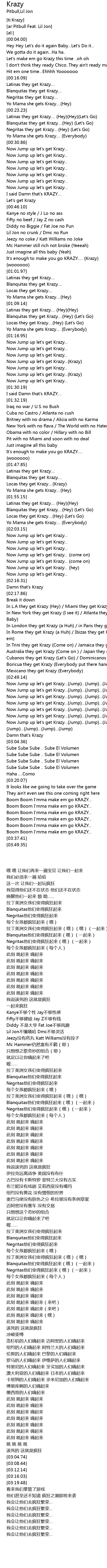 | [01:59.20] | Locas they get Krazy....(Hey) (Let's Go) |