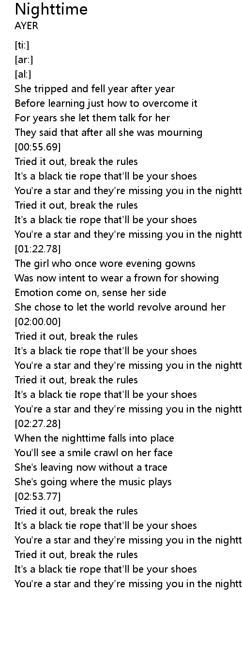When the nighttime falls into place |