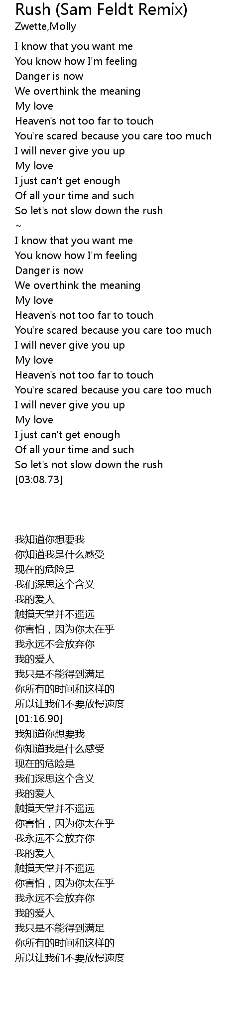 Rush (Sam Feldt Remix) Lyrics