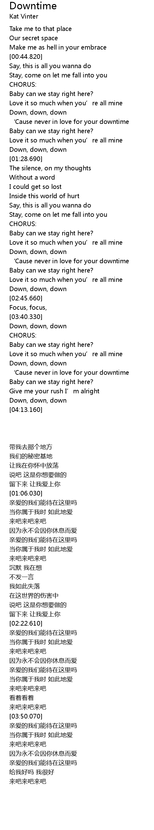 | [04:00.500] | ' Cause never in love for your downtime |