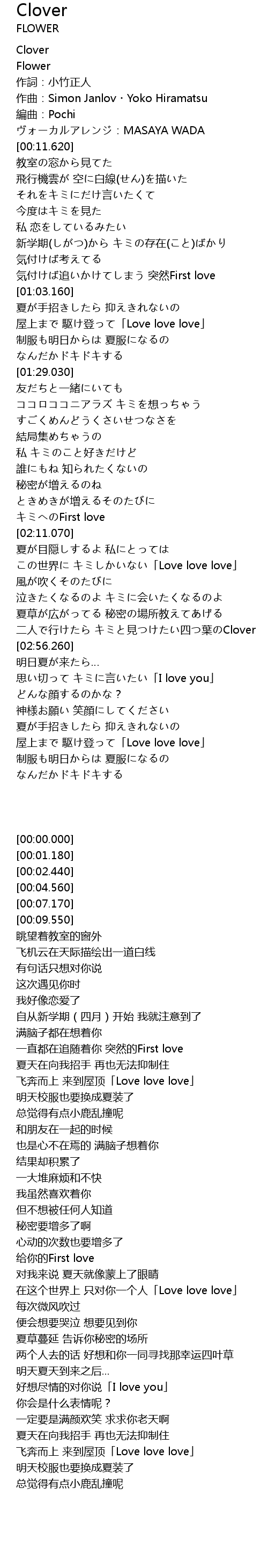 | [00:09.550] | ヴォーカルアレンジ:MASAYA WADA |