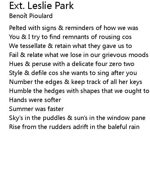 | Song | Ext. Leslie Park |