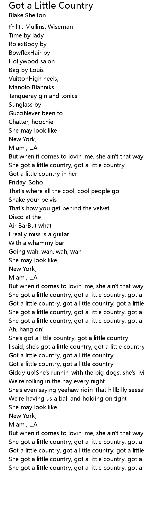 | Giddy up!She's runnin' with the big dogs, she's livin' on the high hog | |