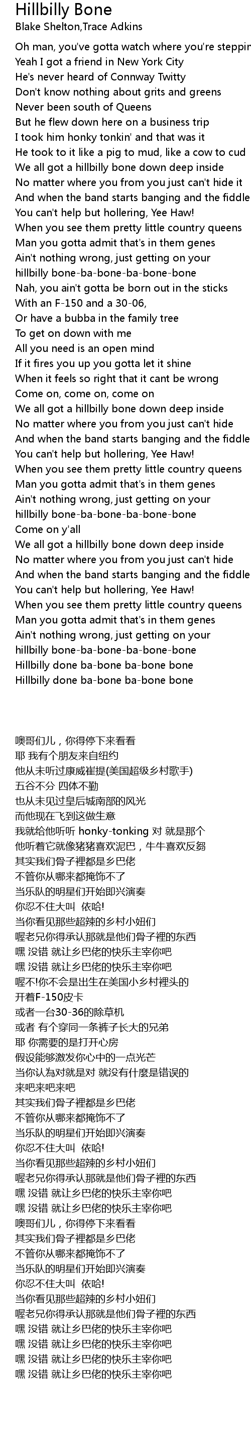 Hillbilly done ba-bone ba-bone bone |