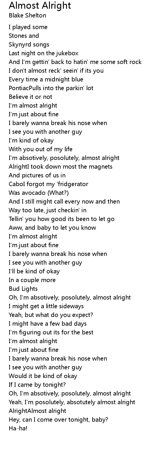 I'm almost alright |