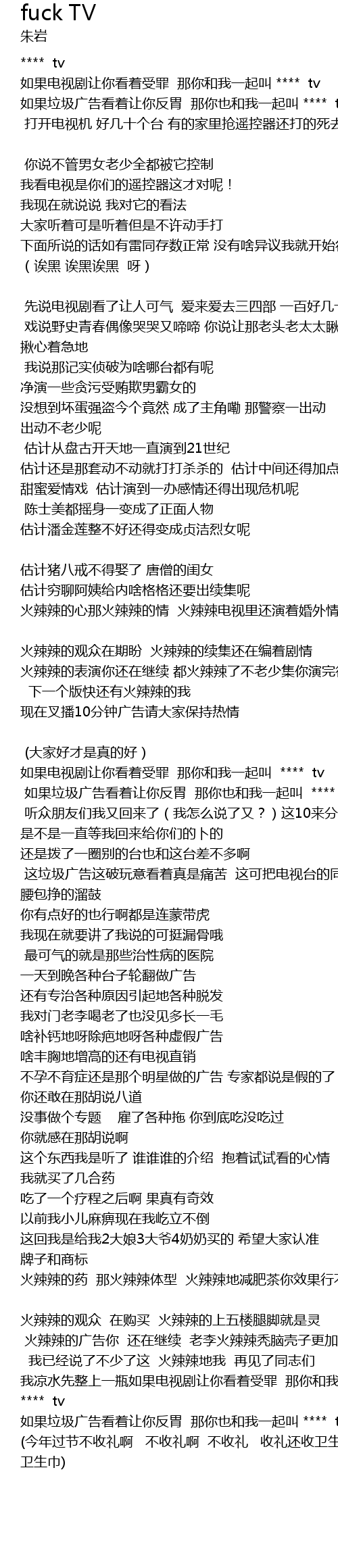 | 如果垃圾广告看着让你反胃 那你也和我一起叫 **** tv(X2) | |