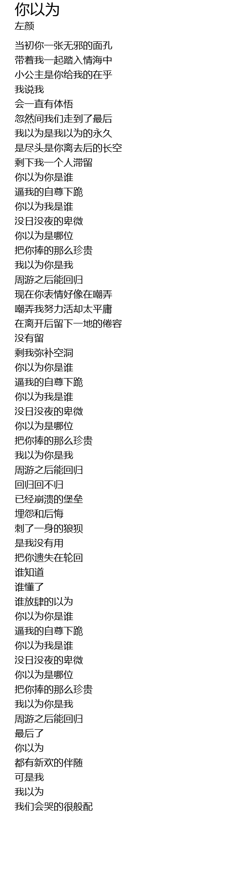 | [01:44.020] | wǒ yǐ wéi nǐ shì wǒ |