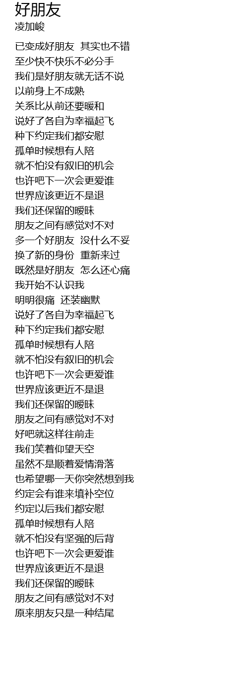 | [01:28.590] | 既然是好朋友 怎么还心痛 |
