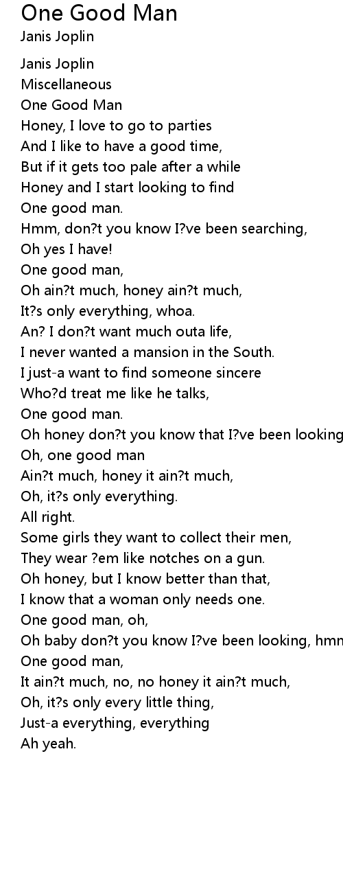 One good man, oh, |