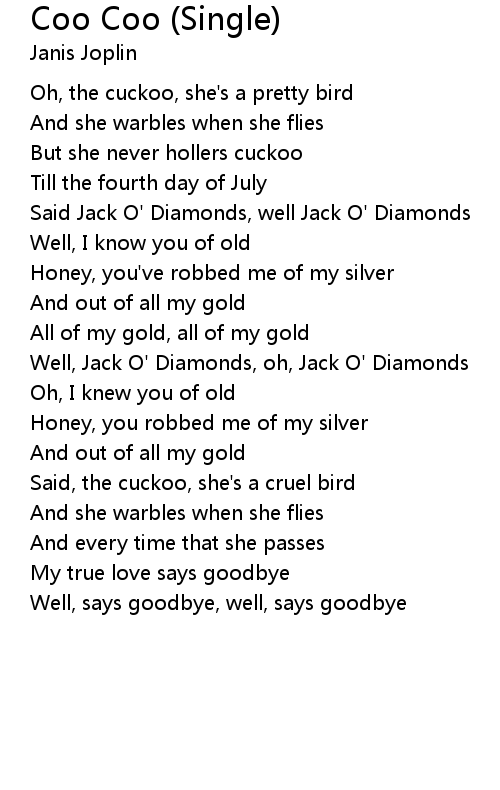 Oh, the cuckoo, she's a pretty bird |