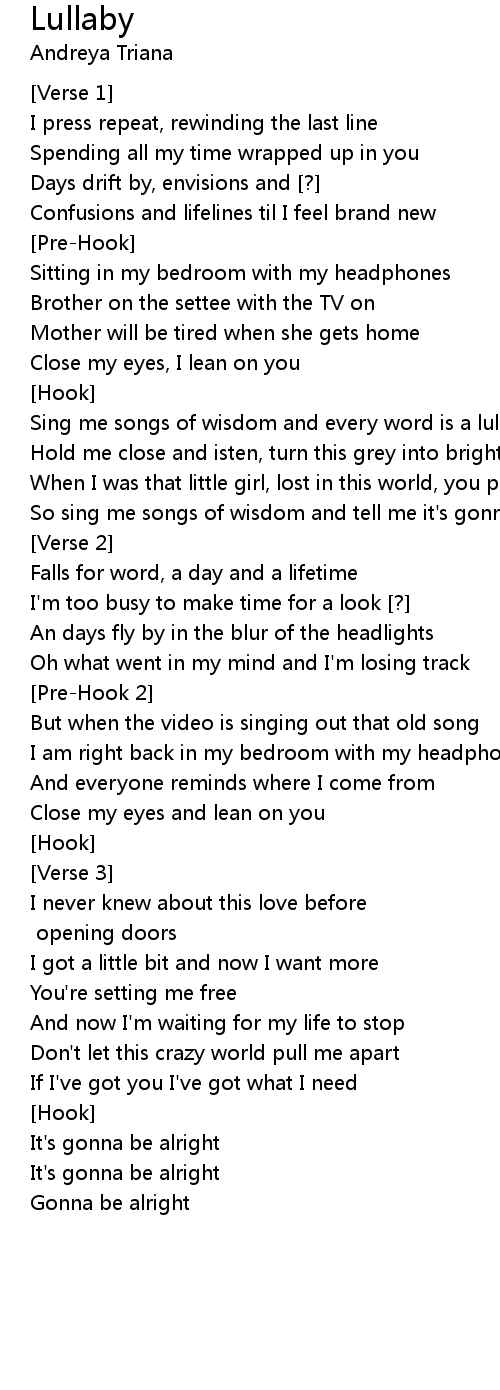 So sing me songs of wisdom and tell me it's gonna be alright, alright |