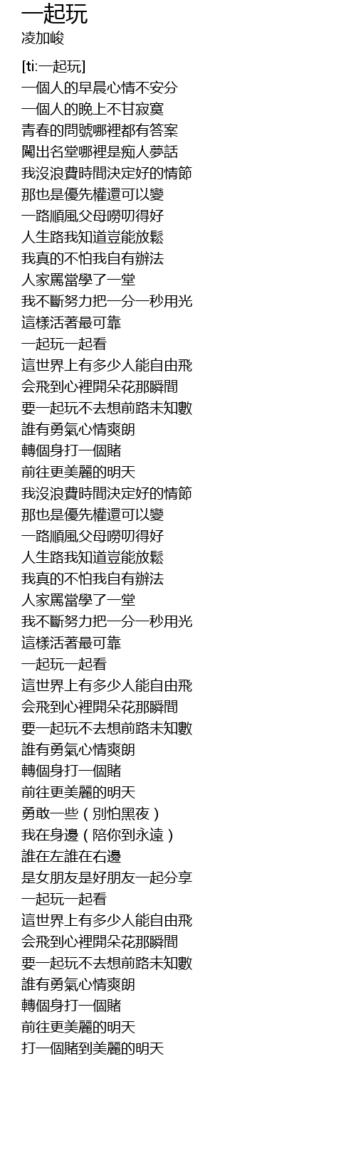 | [03:01.130] | 要一起玩不去想前路未知數 |
