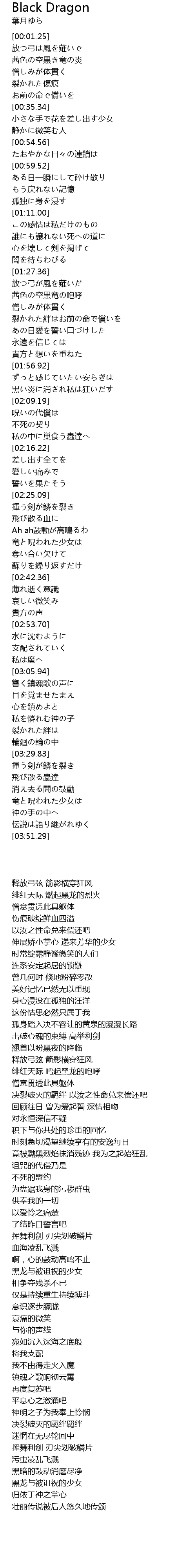 | [01:31.64] | 茜色の空黒竜の咆哮 |