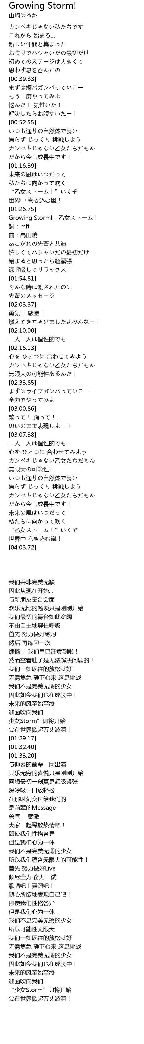 | [01:29.17] | Growing Storm! - 乙女ストーム! |