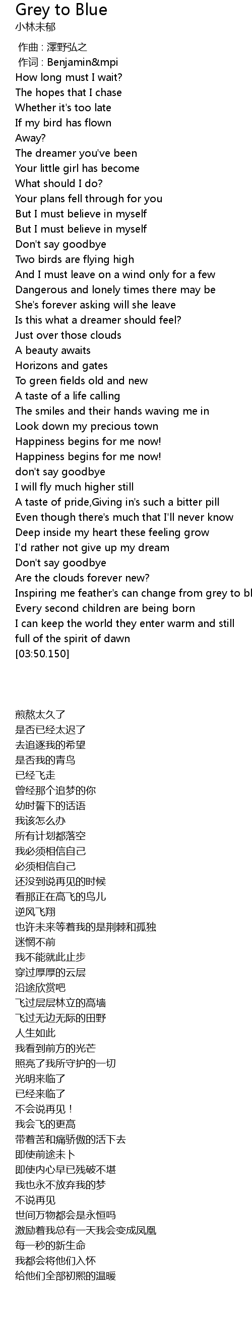 | [03:27.870] | Inspiring me feather' s can change from grey to blue |