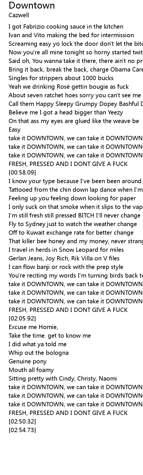 | [00:49.06] | take it DOWNTOWN, we can take it DOWNTOWN |