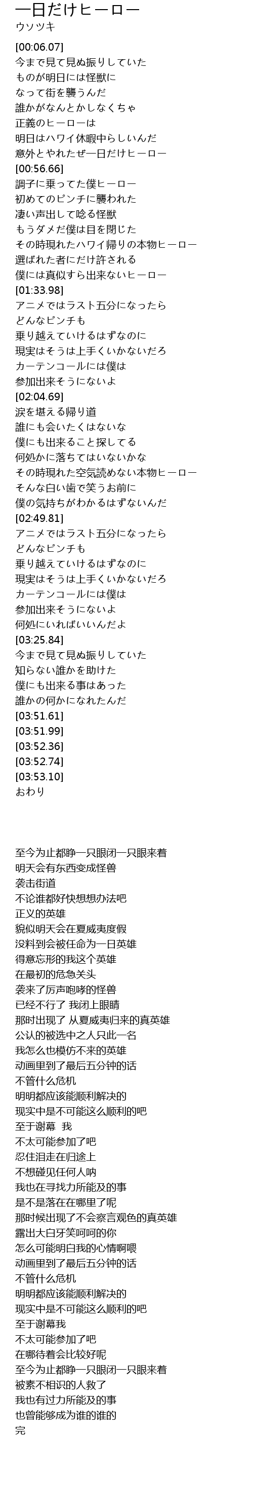 | [00:51.88] | 意外とやれたぜ一日だけヒーロー |
