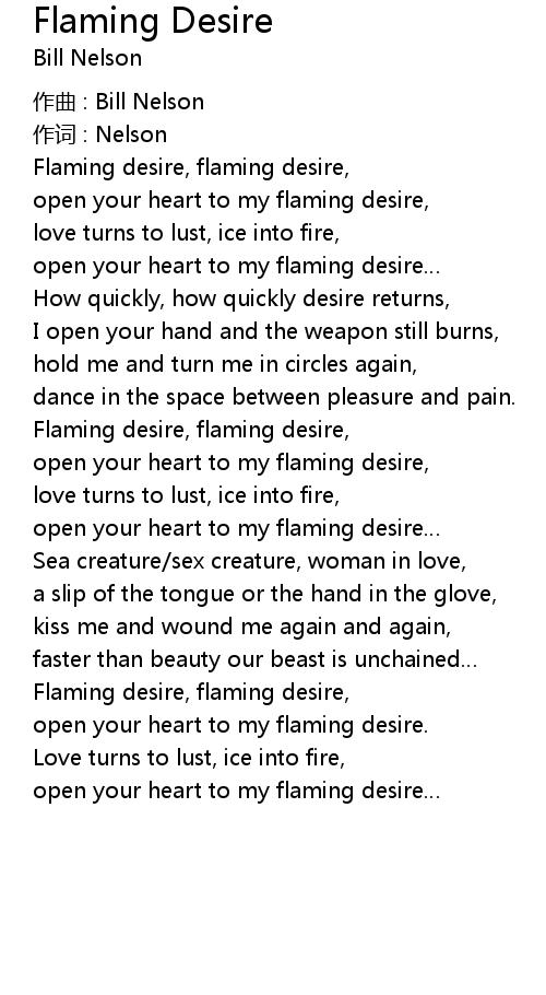 | Flaming desire, flaming desire, | |