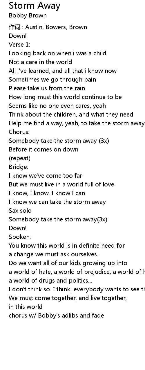| Somebody take the storm away(3x) | |
