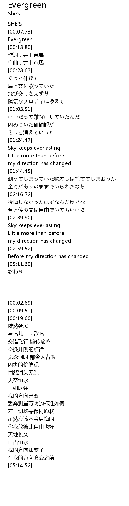 | [02:02.58] | 測ってしまっていた物差しは捨ててしまおうか |