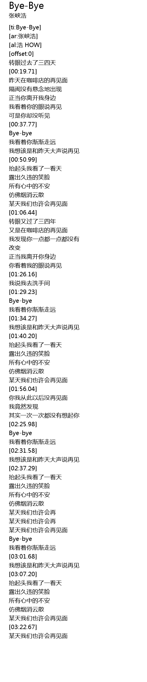 | [03:02.38] | wǒ xiǎng gāi shì hé zuó tiān dà shēng shuō zài jiàn |