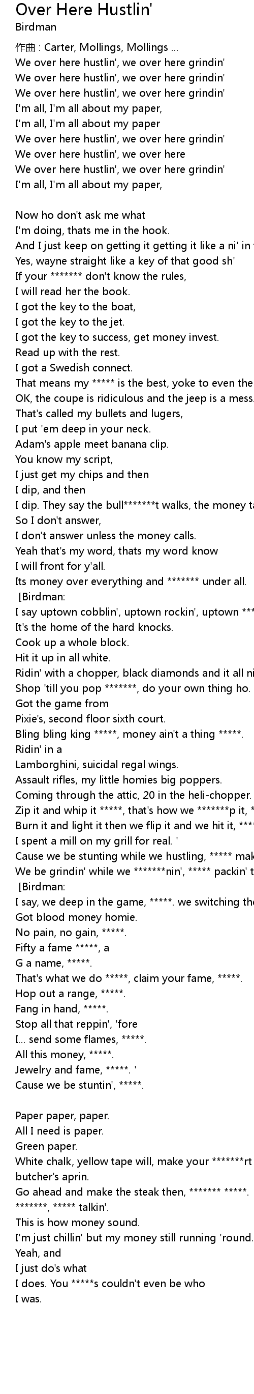 | Stay fly, get money, ***** stackin' the bills. [Chorus] [Birdman:] | |