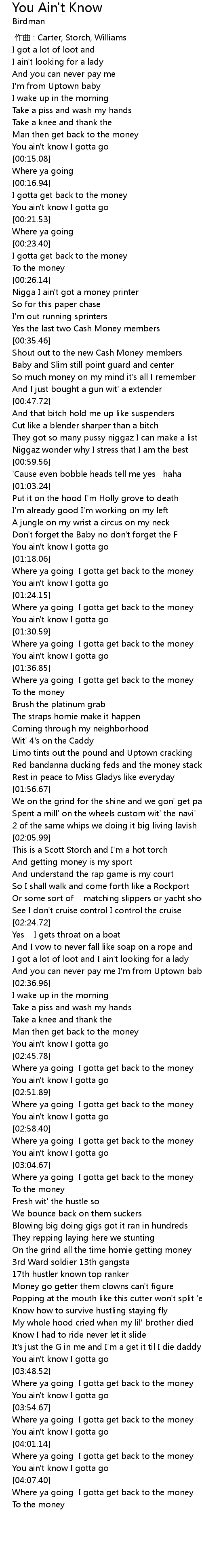 | [03:58.81] | You ain' t know I gotta go |