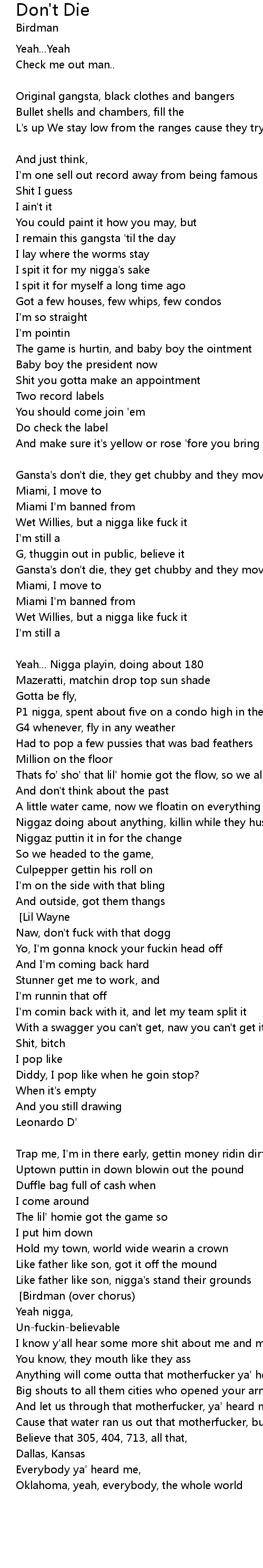 Like father like son, nigga fuck them clowns [Chorus] [Birdman (over chorus)] |