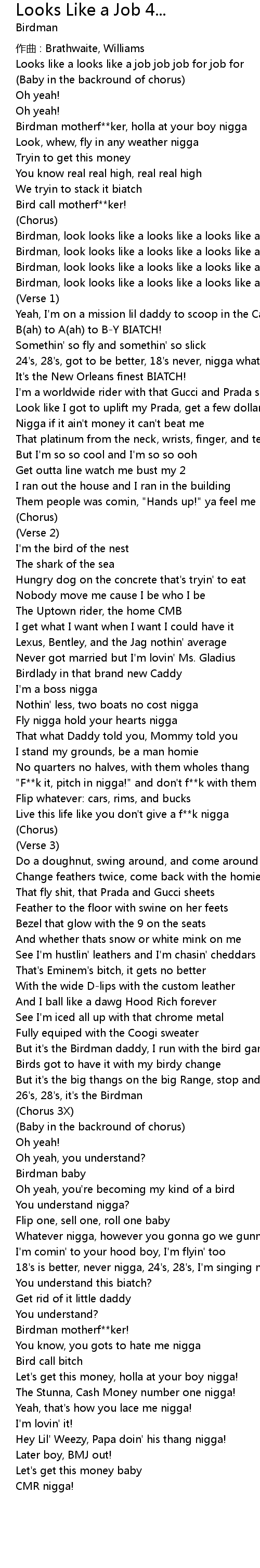 | Birdman, look looks like a looks like a looks like a job job job for job for | |