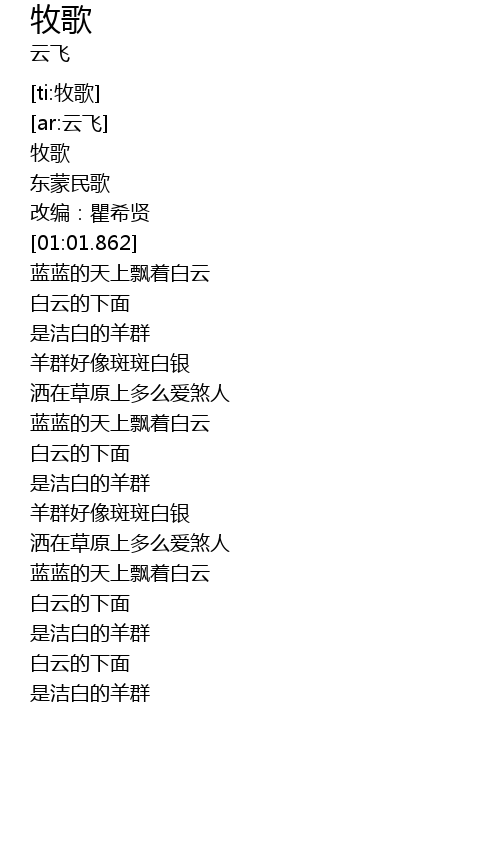 | [01:17.801] | 蓝蓝的天上飘着白云 |