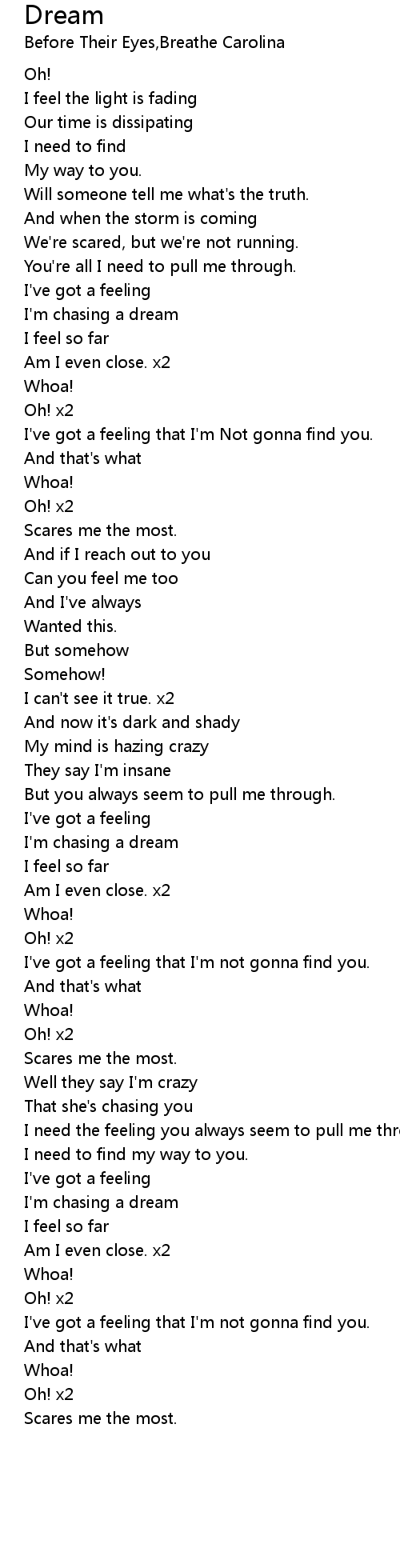 I'm chasing a dream |