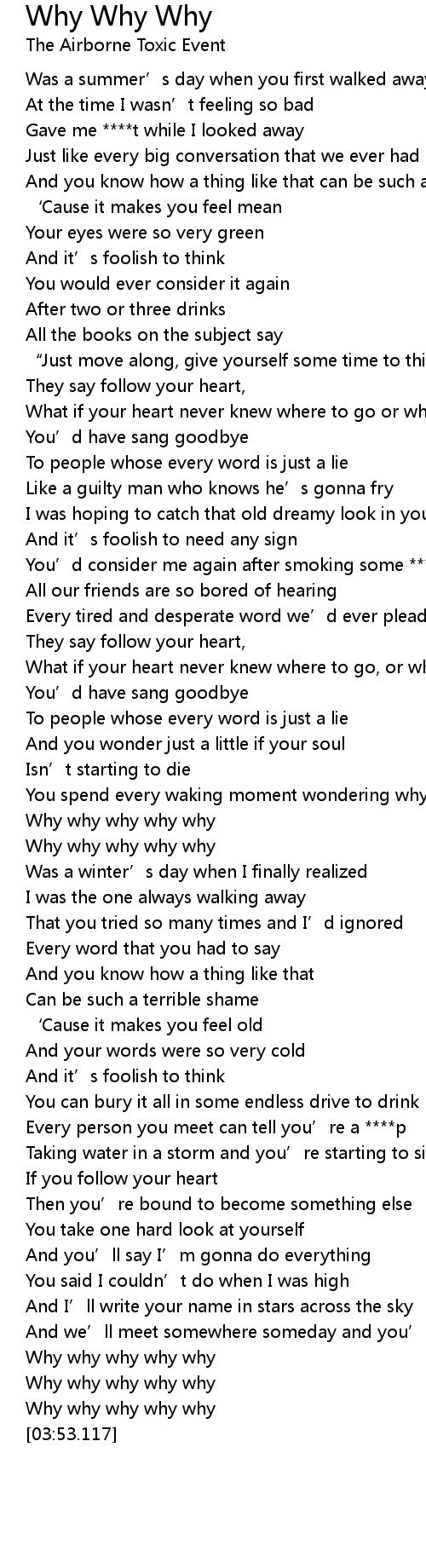 | [02:00.352] | Why why why why why |