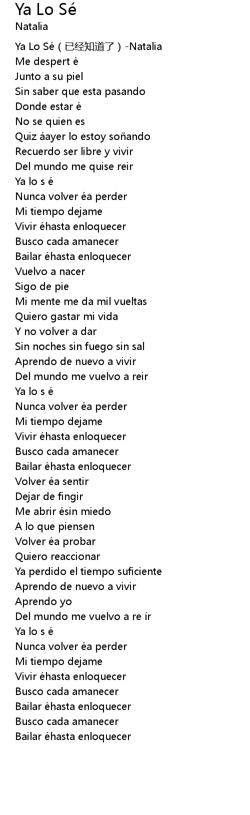 | [00:00.00] | Ya Lo Sé(已经知道了)-Natalia |