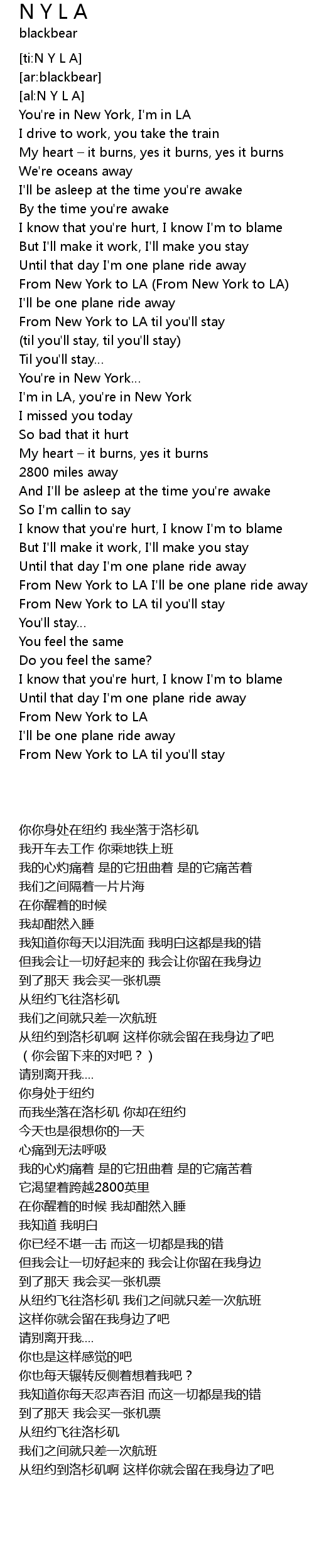 | [02:53.91] | From New York to LA I' ll be one plane ride away |