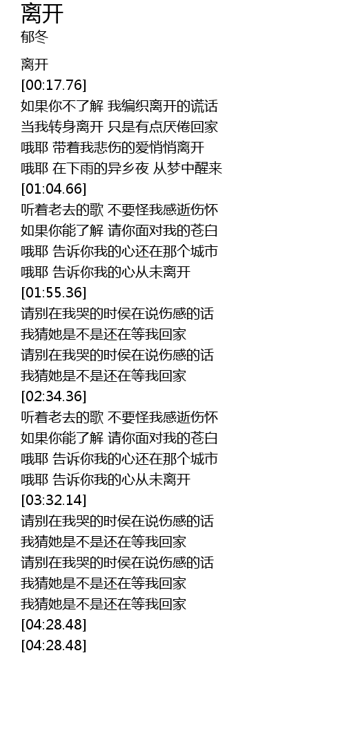 | [00:03.84] | 离开 |