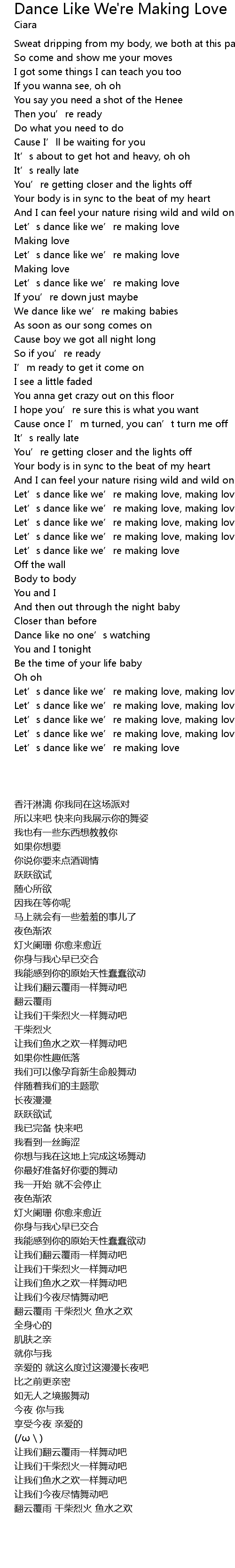 | [01:19.48] | Let’s dance like we’re making love |
