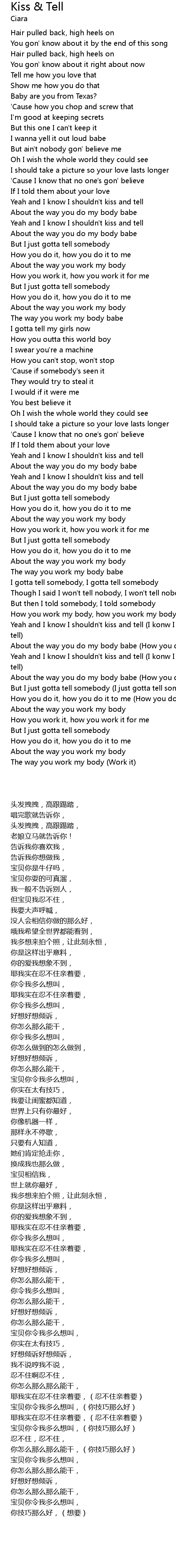 Yeah and I know I shouldn't kiss and tell (I konw I shouldn't kiss and tell) |