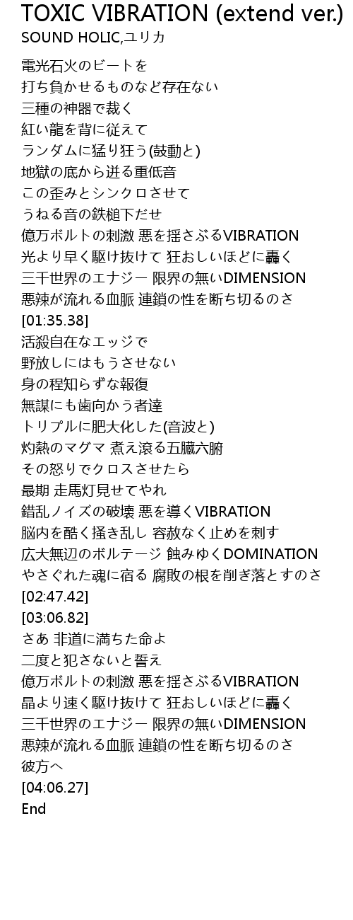 | [03:38.43] | 億万ボルトの刺激 悪を揺さぶるVIBRATION |