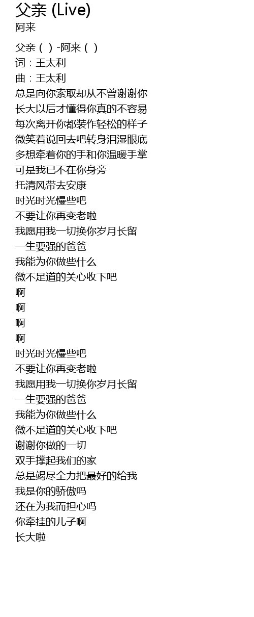 | [00:21.501] | 长大以后才懂得你真的不容易 |